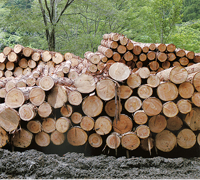 同社では、今回の材料を生産するために1300本弱の檜を用意。昨年11月から今年1月にかけて切り出しを行った。