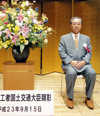 市内戸川在住の(株)角貝工務店社長・角貝一行さん(58)が、平成23年度優秀施工者国土交通大臣顕彰を受賞した。都内で9月15日、顕彰式典が行われ、受賞者に記念徽章などが贈られた。
