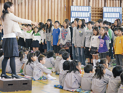 園児、児童らはこの日のために練習をした歌や合奏、群読を披露したほか、それぞれの園歌、校歌を合唱した。同校の児童が全員で堀川小学校の”30歳の誕生日”を祝う「ハッピーバースデーのうた」を合唱すると、会場からは暖かい拍手が送られた。