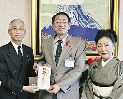 この日は藤嶋進代表と藤京香理事長が、古谷義幸市長に収益金11万9683円を手渡した。古谷市長は「本当にありがたい。しっかり届けます」と感謝を述べた。