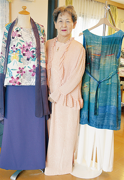 新沼さんは、糸の染色から裁縫まで1人で仕上げた洋服を2着出展した。作品のモチーフは、竹富島で見た蝶と海の色。「受賞にびっくり。制作活動の励みになります」と喜んだ。