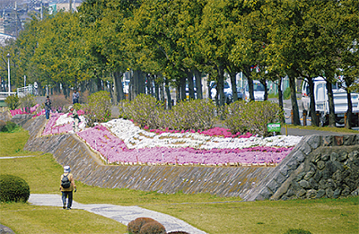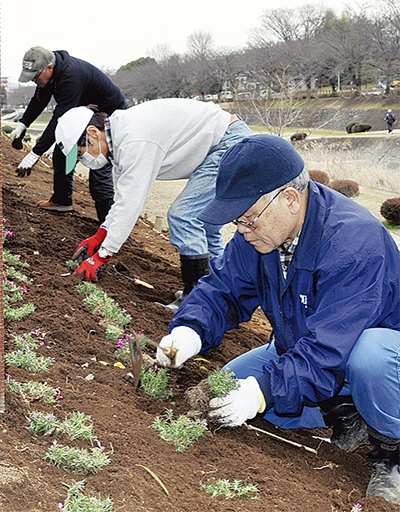 「水無川沿いに芝桜の名所を作ろう」と活動しているNPO法人「水無川(みなせ)芝桜の会(井上正行理事長)」が3月7日・8日に芝桜の植栽を行った。