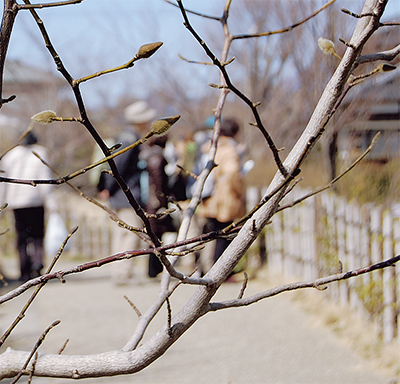 春先に白い花を咲かせるコブシのつぼみがふくらみ始めた。例年3月中旬から下旬にかけて開花する。