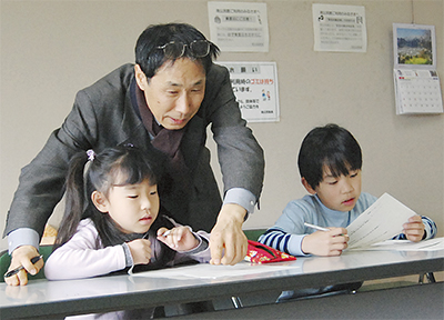 この日、俳句会に参加したのは、2年前から通う大瀧ミチル君(南小3年)と、この日が初めての太田有美さん(南小1年)。2人は真剣なまなざしで鉛筆を走らせていた。