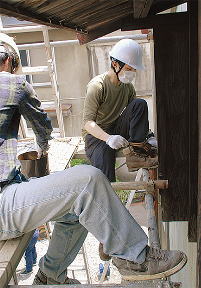 当初は業者に依頼する予定だったが、メンバーに建築のプロや建築を学ぶ学生が多く「自らの手で補修しながら愛着を育くむことも活動の一つ」と会員自らで補修を行うことにした。