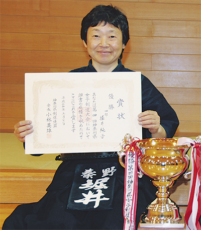 第4回神奈川県女子剣道大会が5月26日、県立武道館(横浜市港北区)で行われ、第4部(50歳以上〜60歳未満)に出場した市内本町在住の堀井純子さん(52)が優勝した。
