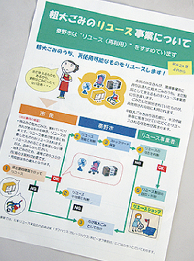 秦野市では、清掃事業所に持ち込まれた粗大ごみで、まだ製品として使えるものをリユース(再利用)事業者に引き渡し、再販することでごみの減量につなげる「粗大ごみのリユース事業」を4月から開始している。県内で同事業を行っているのは秦野市のみ。