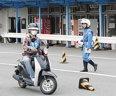 通勤や趣味で2輪車に乗ることが多いという社員が参加。県警の女性白バイ隊員の指導を受けながら、それぞれ持ち込んだ愛車に乗り、1本橋やスラロームでの操縦、加速からブレーキまでの一連の動作などを行った。参加者は「安全運転への意識がより高まった」などと感想を話した。