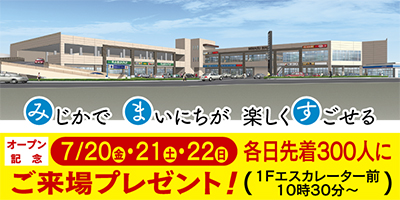 大井町の元東京スターレーン跡地に7月20日、複合商業施設「ミマスモール」がオープンする。モールに入る店は食品館あおば、ハックドラッグ、ジュエルカフェ、沼津魚がし鮨、かつ榮、ザ・ダイソー、イレブンカット、ゲームワンダ、スッキリ、大井松田ファミリー歯科(10月上旬開院予定)、ローソンなど。(問)東京美装興業【電話】03・5322・2736(田中・江濱)