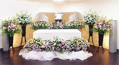 故人や葬家の意思を活かした「あの人らしいお葬式」の実現にも富士見斎場では最大限応える。希望が多い「生花祭壇」も多様で、予算や希望に合わせて故人の好きだった花を飾り、温かい雰囲気の中お見送りすることができる。