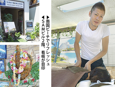 店内は実際の南国ビーチのような演出。個人店ならではの痒い所に手が届くサービスとボディケアは男女問わず好評。以前の店舗から30〜50代の女性を中心に幅広くリピーターが通う。