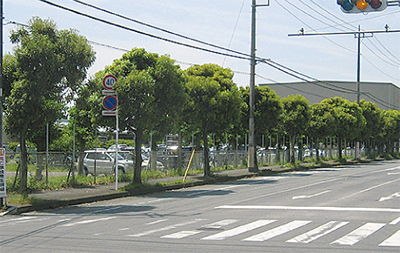 植栽されている街路樹のほとんどは、マテバシイという常緑樹。市道14号線(全長2200m)の両側の歩道に約250本が植えられている。