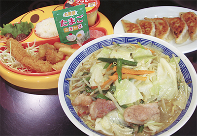 他にも、ネギチャーシュー丼(580円)、長時間豚バラを煮込んだ味玉角煮定食(750円)などもご用意。お子様連れにはアンパンマンプレート(200円)もあるから家族で気軽に入れる。「タウン見た」で特典有。