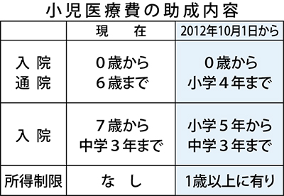 10月から拡大されるのは通院への助成で、対象年齢が6歳までから小学4年まで引き上げられる。小学5年以上は現状通り。