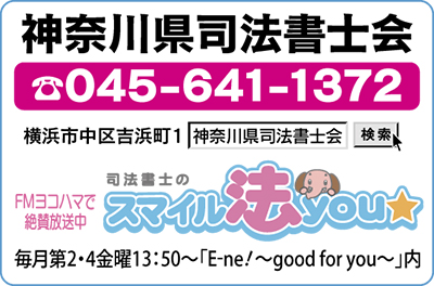 当日は同会の司法書士さんが相続や遺言、成年後見、労働トラブル、借金、会社や土地・家屋の問題など様々な悩みに応じてくれる。会場ではFMヨコハマで放送中の「司法書士のスマイル法YOU☆」番組オリジナルクリアファイルをもれなく進呈。詳細は左記へ。
