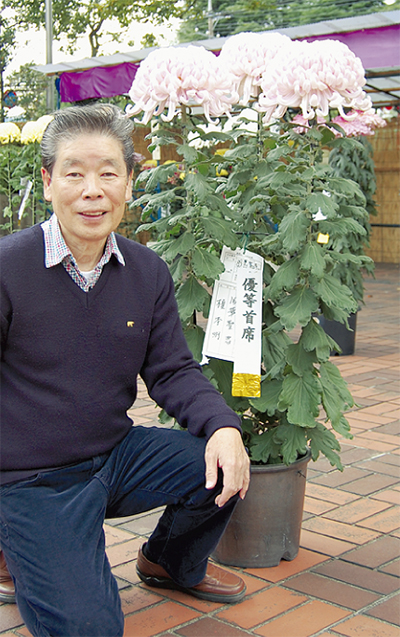 菊花展には、秦野菊花会(草山良会長・34人)のメンバー約30人が出品した。榎本さんは「嬉しい。花を楽しみながら育てるのが秘訣。今後も生涯の趣味として続けていきたい」と話している。
