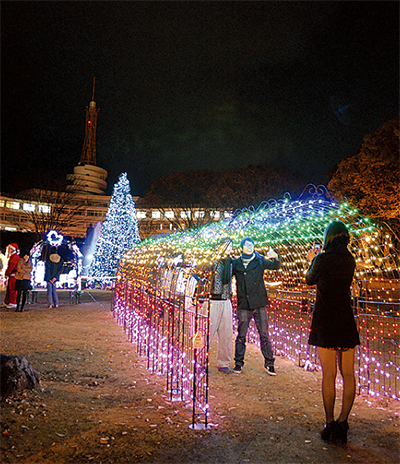 東海大学湘南キャンパス(平塚市北金目4の1の1)の噴水広場周辺で12月25日(火)まで、毎年恒例のクリスマスイルミネーションが行われている。