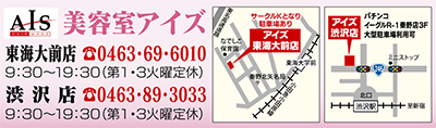 同店は今年6月に、渋沢駅近くにオープンした『AIS』の市内2号店。ニューヨークや青山で活躍したスタイリストたちが、年配の方から主婦まで、「本物の”キレイ”」をトータルプロデュースしてくれる。