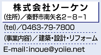 住宅・オフィスの設計、施工、リフォームなど、幅広い分野で躍進を続ける建設会社(株)ソーケン(本店/市内南矢名)。