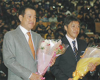 原監督は「母校は特別な場なので、今日は楽しかった。来年も連覇を目指したい」と力を込めた。澤登さんは「自分も監督になって優勝し、ここに上がれるようになりたい」と話した。同大学は「原監督や澤登さんのような有名なOBが来ると、学生たちも喜ぶ。今後も活力ある東海大学をアピールしていきたい」と振り返った。