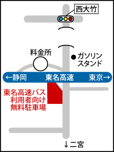 市公共交通課は2月から、東名秦野バスストップ下り線進入路の隣地(西大竹943の1及び2)を東名秦野バスストップから乗降する利用者が駐車できる無料駐車場を設置した。これは市が民有地を借り受けて提供しており、現在仕切られているのは自動車13台分と、二輪車の駐車場。来年度には同じ敷地内に自動車10台分を増やす予定。