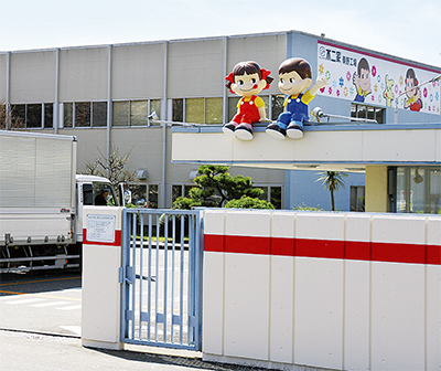 これは地域へのアピールと従業員の意識向上のために同工場が本社に提案し、設置されたという。伊藤工場長は、「地域に根付いた愛される企業になっていきたい。従業員がペコちゃんポコちゃんを見て優しい気持ちで仕事をしてくれれば」と話した。