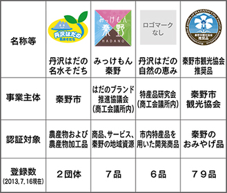 団体や行政などが、一定の基準を満たした物品などを認証し、PRの強化や販売促進を目指すブランド化事業。秦野市内では、市や観光協会、商工会議所などがブランド事業を展開。この夏には、新規認証品の募集も行われている。それぞれの特徴をまとめた。