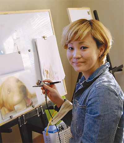 現在は自宅に構えたアトリエ兼スクールで講師を務めながら作品を制作している。大津さんは「エアブラシはTシャツや靴、自転車などにも描ける。表現方法の一つとしてオリジナリティを出せるので、もっと広げていきたい」と話している。