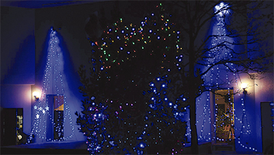 秦野南が丘もくせい西住宅(ウェルシー333)で恒例のクリスマスイルミネーションが行われている。住民有志が2008年から実施しているこのイルミネーション。南が丘相鉄ローゼンから南方向、マンションのトンネルをくぐった場所にある集会所の東西を会場に、今年も12月25日(水)まで、午後5時過ぎから9時まで点灯される。