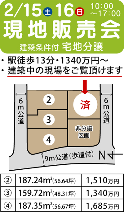 駅徒歩13分 土地48坪超 価格1340万円〜