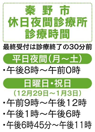 問い合わせは秦野市休日夜間診療所【電話】0463・81・5019へ。