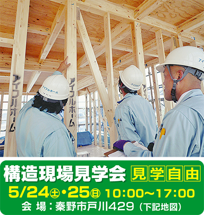 これから家づくりを考えている人に、ぜひ足を運んでもらいたいのが本日24日(土)・明日25日(日)に市内戸川で開かれるアイフルホームの構造現場見学会。