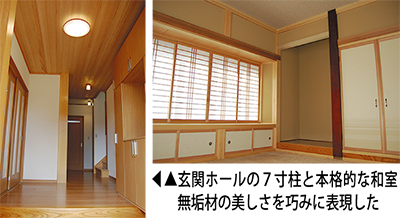 市内堀川で開く完成現場見学会では、(有)高橋工務店の「匠の技」を垣間見ることができる。富士山麓で切り出したヒノキ材を柱に使用した今回の二世帯住宅。高橋氏は「木は素晴らしい性能を持っている。熱を伝えにくく、弾力性があり、調湿作用に優れている」と天然素材の魅力を語る。