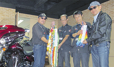 原さんは9日に秦野を出発。千羽鶴をバイクの収納スペースに入れ、横浜市在住の友人と共にバイクで広島へ向かった。