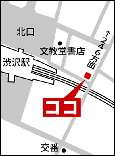 渋沢駅北口を右に出て線路沿いに徒歩3分。ドアを開けるとワイワイと会話と料理を楽しむお客様で賑わっていた。