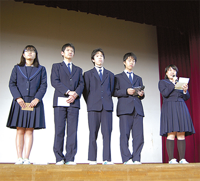 生徒会顧問の後小路大志教諭は「生徒会役員自ら進んで毎日朝から来て準備をしてくれていました」と話す。その頑張りに、集会最後に生徒会への感謝の手紙を映像で流すというサプライズも用意された。「びっくりしましたが、嬉しかった」と話すのは、集会担当として企画を進めてきた芦川立樹さん(3年)。「この集会をきっかけに、少しずつ皆が感謝の言葉を直接伝えられるようになってもらえたら」と話した。