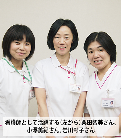 看護副部長・感染管理室室長の小澤美紀さんは、同病院初の「感染管理認定看護師」となった先駆者。入退院調整科長の岩川彰子さんは「脳卒中リハビリテーション看護認定看護師」として活躍中だ。