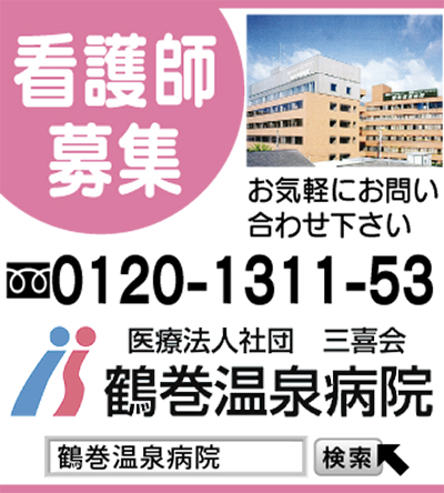 同病院では、看護師を募集中。シニア世代、結婚等で現場を離れている「潜在看護師」には支援研修等で職場復帰をサポート。詳しくは電話やHPで。