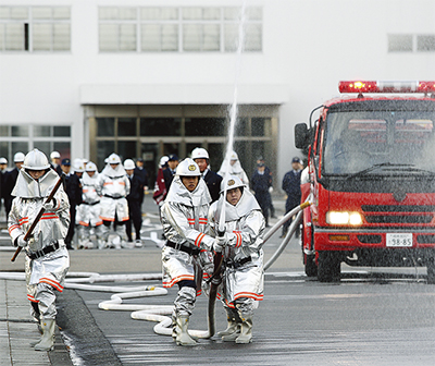 同社では「自分たちの職場は自分たちで守る」ことを目的に、職場の従業員が自衛消防隊を組織。日頃から訓練を重ねている。