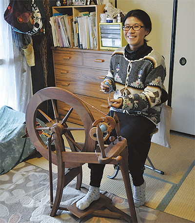 紡ぎ車を手に入れたのは昨年。年代物のため、知人から譲り受けた時には修理が必要だった。同じ頃、同タイプの紡ぎ車を手に入れた友人がおり、修理を請け負ってくれたという。「本当に様々な人の縁で糸紡ぎを始められた。周囲に恵まれましたね」とほほえみながら紡ぎ車を動かす。