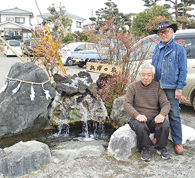 自宅裏庭からパイプを約75m通し、土地の高低差を利用して誘引した。岩石で泉をデザインし、これら一連の工事は、古くからの友人で大工の奥津昌男さん(73・南矢名)が無償で引き受けた。