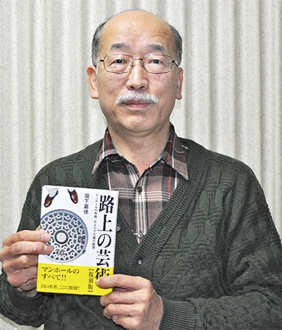 南矢名在住の垣下嘉徳さん(62)が2005年に出版した著書『路上の芸術―マンホールの考察、およびその蓋の鑑賞』。メディアでも多く取り上げられ、ブームとなったマンホール蓋観察の火付け役である同書の復刻版が、2月28日、10年ぶりに発売された。