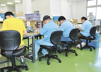 3階建ての建物にはおよそ50人が通い、同法人のスタッフらと手作業で住宅関連の機器の組み立てなどを中心に行っている。菅沼理事長は「時代のニーズに合わせて、これまでいろいろな仕事を請け負ってきた。これからも『絆』を大切に、就労支援の場として障害者を支えつつ、地域からあてにされる施設として活動していきたい」などと話した。