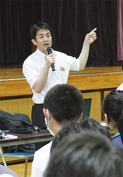秦野市立北中学校(大塚敦校長・393人)で7月1日、職業観等を育むキャリア教育として「第1回生き方講演会」が行われた。講師を務めたのは、秦野市出身でプロボクシング元東洋太平洋バンタム級チャンピオンの新田渉世さんだ。