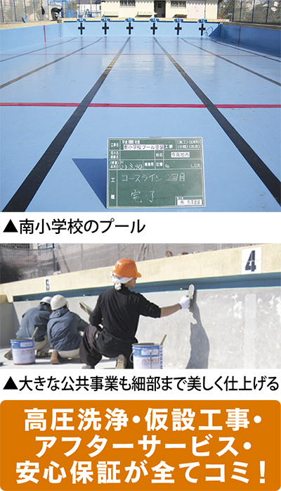 南小学校のプールや、南幼稚園の園舎などの公共事業も数多く請け負ってきた実績を持つ同社。「ほかにも美容室や飲食店、一般のご家庭の施工もさせていただいています。中には10年以上お付き合いのある方も少なくありません」と熊澤さん。いつも「お客様の満足」を考え仕事に取り組んでいるという。