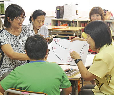 秦野市立鶴巻小学校(竹野吉信校長)で8月10日と11日に、特別支援学級の指導研修会「サマースクール・イン・つるまき」(橋本ゆかり代表)が行われた。秦野市特別支援教育研究会主催、スモール・ステップ・クラブ共催。