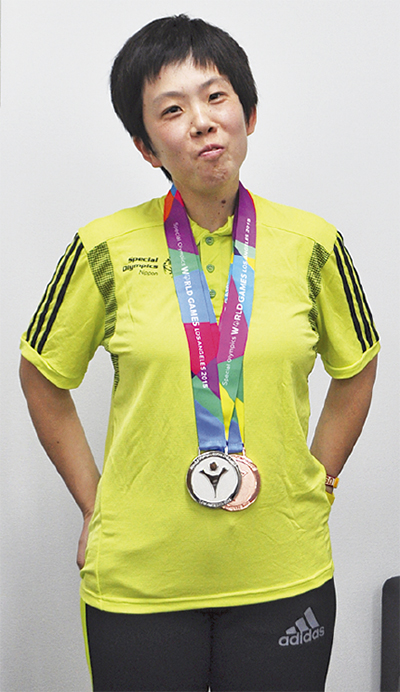 7月25日から8月2日まで米国ロサンゼルスで開催された「2015スペシャルオリンピックス夏季世界大会」で、秦野市曽屋在住の高橋絵美さん(33)が2つのメダルを獲得した。