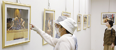 撮影者は市内の写真愛好家・野口猛さんと、プロスポーツカメラマン・鈴木義和さん。来場者は迫力のある取組の写真等を食い入るように見つめ、「いい写真。さすが、プロが撮ると違うわね」などと感心していた。