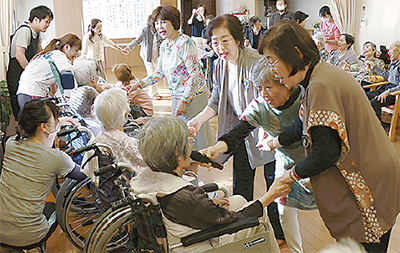 国際ソロプチミスト秦野(上瀬節子会長)が10月19日、秦野市西田原の特別養護老人ホーム「田原の里」で、同施設の利用者約30人と一緒にレクリエーションを行った。同所での奉仕活動は2回目で、同団体30周年の奉仕イベントの1つ。