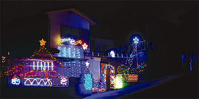 住宅の主は中嶋重人さん(65・名古木)。10年ほど前、通勤時にイルミネーションで装飾された住宅を見かけ「何となくやってみようかと思って」。思いつきで始めたものの、今では近所の人気スポットだ。